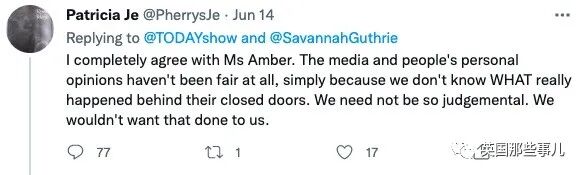“我完全同意Amber女士的观点。媒体和人们的看法一点都不公平,因为我们不知道他们关起门来后到底发生了什么。我们不应该对别人这么苛刻,因为我们也不希望被这样对待。”
