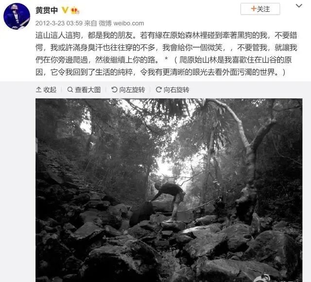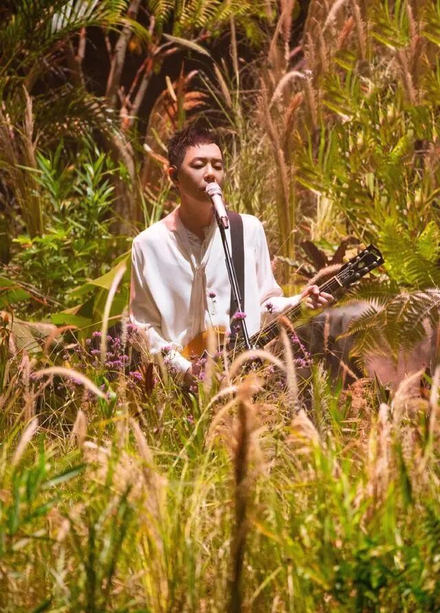 黄贯中白衣短发,站在草木丰茂的舞台上,浅吟低唱。不知道那一刻,他是不是仿佛身在最爱的家,除了同样令人心旷神怡的山景野致,还有爱妻和稚女。