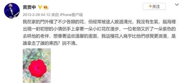 花开果熟时,有时候路人也会采一朵花、摘几颗果带走,但黄贯中并不会生气。他在脑海里编织着情人们“投我以木桃,报之以琼瑶”的情节,觉得赠人以玫瑰,自己亦收获了浪漫。