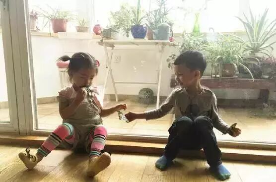微博经常晒出两个孩子的互动