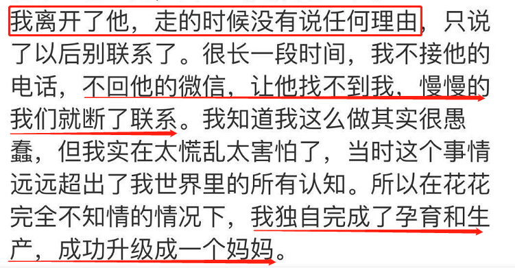 她消失了很长时间,华晨宇联系过她,可她不接电话,不回微信,自己把娃生了。