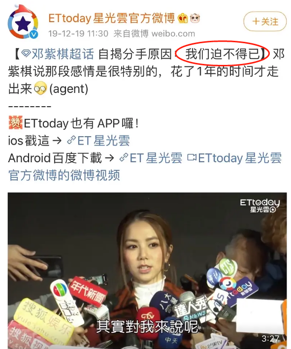 可邓紫棋2019年接受采访,说她和华晨宇分手是迫不得已,花了一年时间走出来,还写了好多首歌。