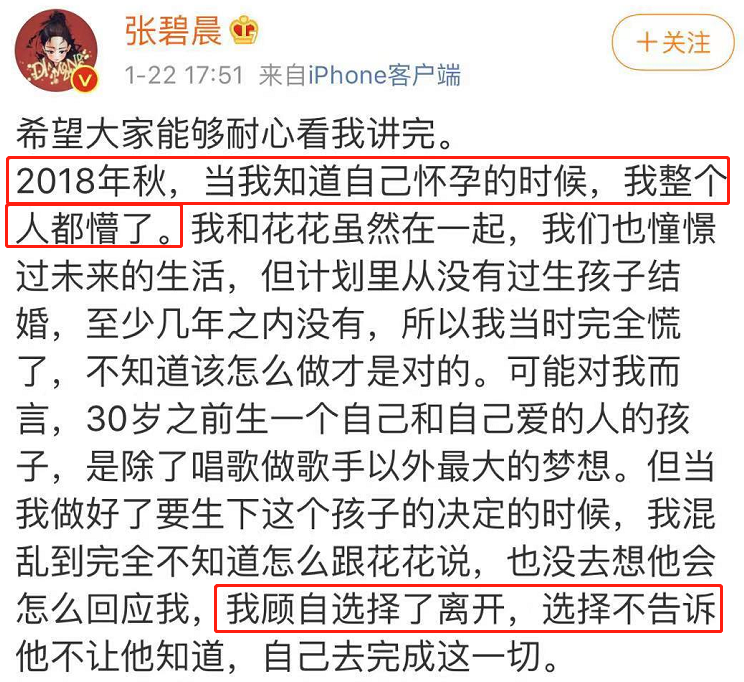 张碧晨发了长文,讲述了自己怀孕的经过。