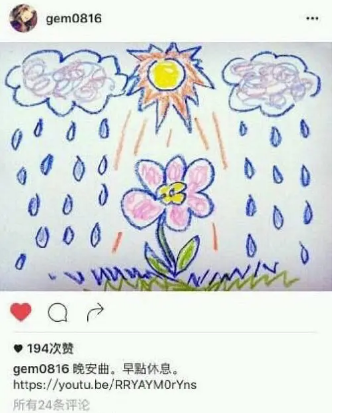 2016年,邓紫棋发过一幅画就是“花晨雨”。