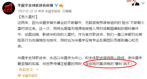 华晨宇粉丝团也否认,坚定地对莫须有的“爆料”说不!