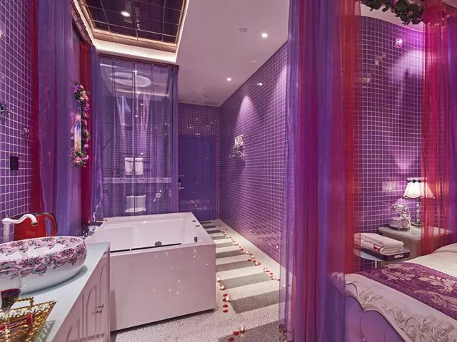 “满是镜子的墙面,荧光按摩浴缸,房间里的小木马,旋转的双人床,还住过那种床震动的频率和卡啦OK的节奏是一样的,年纪大了,玩不来。”
