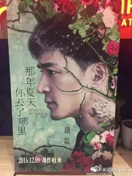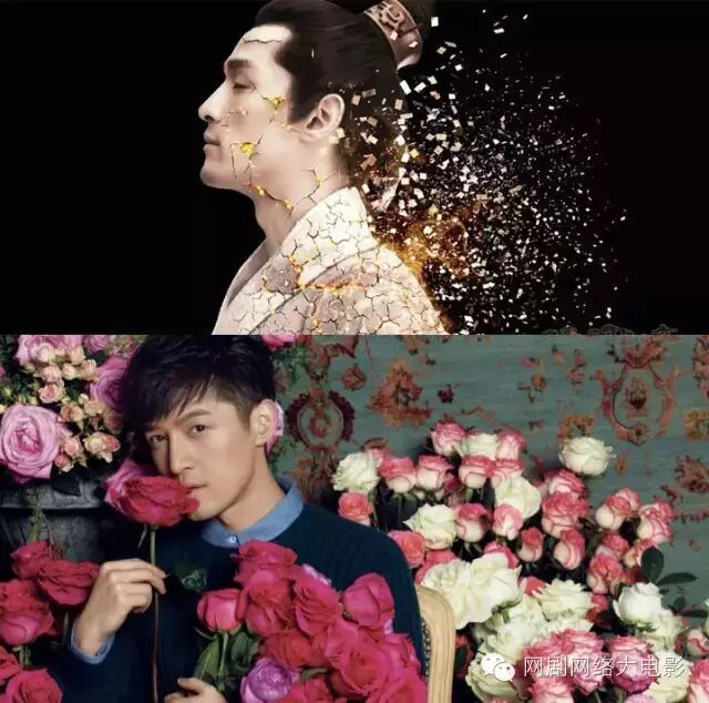 照片里胡歌的脸被枝、叶、花包围,有点《琅琊榜》和胡歌之前拍的花店广告的影子。