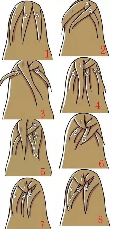为了让大家看懂编发过程,特意找了一张蝎子辫的详解图,希望大家能学会啦~~
