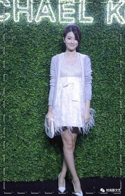 这件裸色系的抹胸裙,穿在乔欣的身上,真是让她显露出了好身材。下面是裸色的内搭和轻纱,上面则是黑白色的设计,真是越简单,越美。