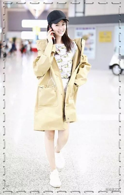 不得不说,乔欣对于时尚的驾驭能力还是毋庸置疑的。只见她里面穿上了一件白色的T恤,上面还印着印花图案,下面又搭配上了一条白色的短裙,外面又罩上了一件卡其色的长款外套,真是非常的时髦。