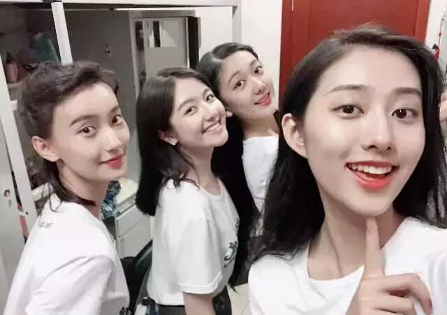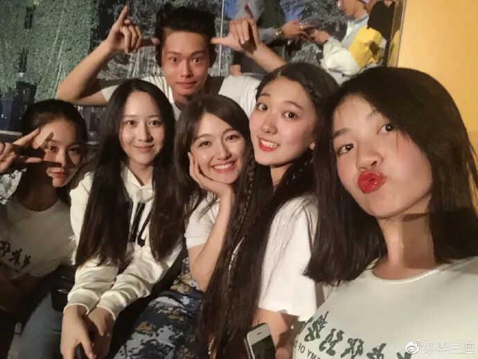 再来看看女生这边,李兰迪的宿舍合照里,四位女生都很甜美可爱。