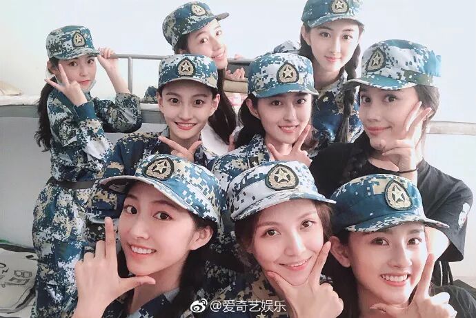 她还晒了自己军训的照片,身边同学也是一群美少女~