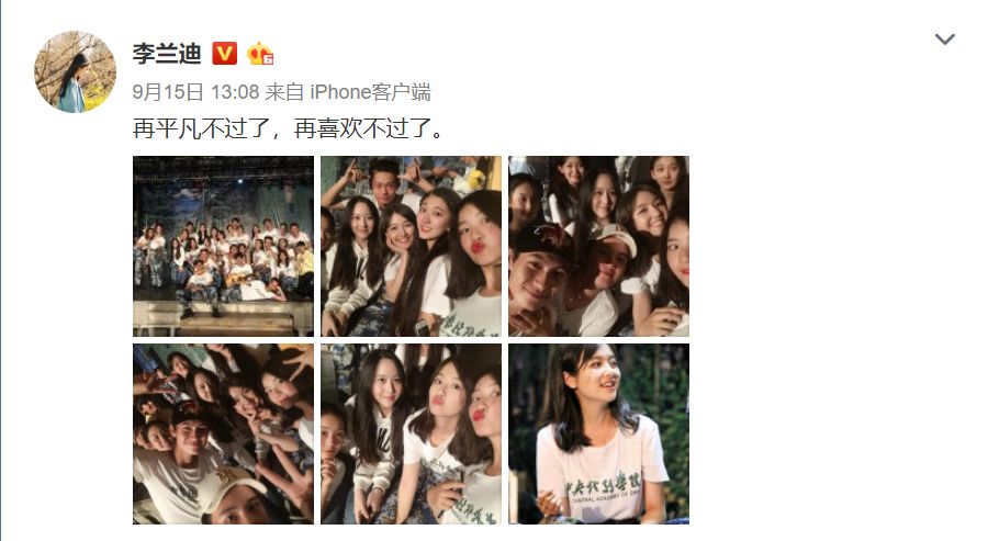 李兰迪发同学合影,抒发对大学生活的感想:再平凡不过了,再喜欢不过了。