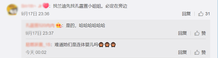 她和李兰迪关系貌似不错,拍照经常挨在一起(右二、右三是孔露萱、李兰迪)。