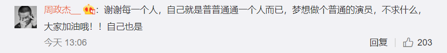 因为是千玺室友,他也受到了一些粉丝的关注,他在微博评论里对关注他的网友们说,“自己就是普普通通一个人而已,梦想做个普通的演员”。