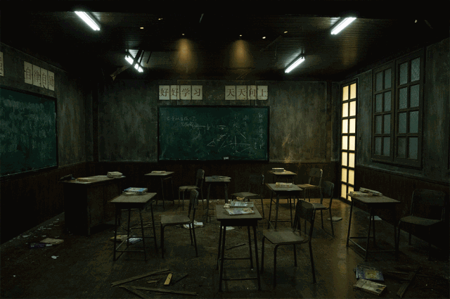气氛诡异到极致,如同恐怖片一般的“教室”,抓上男朋友来一张灵异的合照!尽管艺术家说这“残影是对青春时代的留念”,小编心里还是怕怕的。