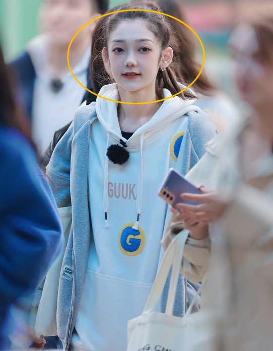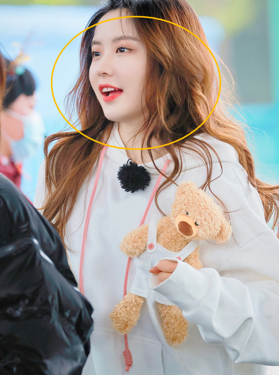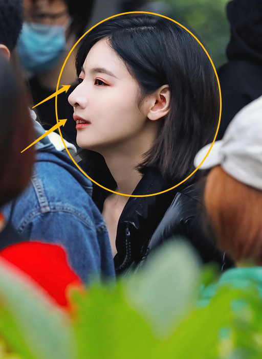 赵粤的直拍就有点奇怪了,她的鼻子有点长到像巫婆的鼻子,而且鼻翼的线条也有奇怪的收缩,感觉像是被p图了一样,赵粤也是比较偏甜美型的属性,但是这次的路透就有点拉垮了,眼影没有晕开,而且眼睛也有点小肿,感觉美女没有休息好。