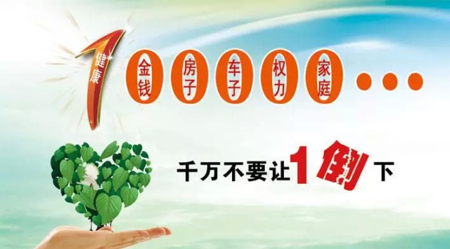 健康是1,妻子、孩子、位子、票子、房子、车子……是0,0在多,1没有没了,就什么都没了。
