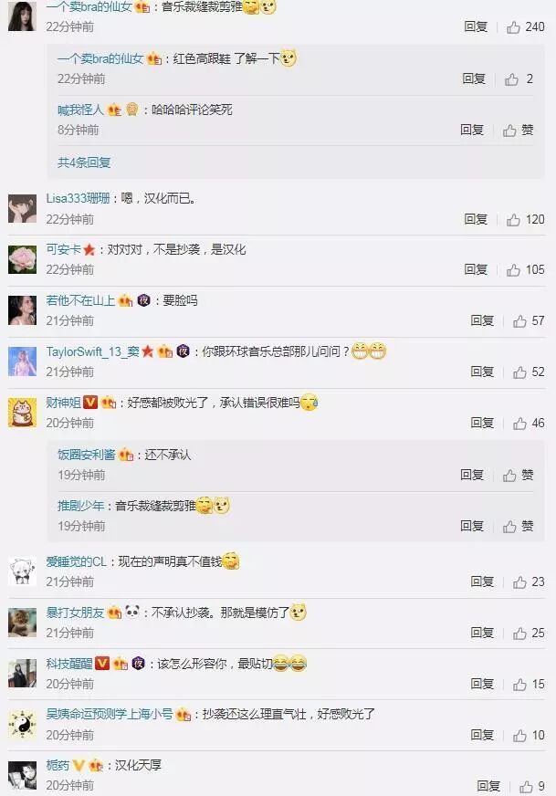 12月23日,蔡健雅公司发布严正声明表示:蔡健雅的新歌是本人亲自创作,不存在任何抄袭的成分,如果再有人肆意散布不实言论以及抹黑蔡健雅本人,对蔡健雅本人造成名誉损害以及构成诽谤的话,公司将会追究一定的法律责任。但是该声明一经发布,不但没有使抄袭风波得到抑制,反而让网友们加大了对蔡健雅的吐槽:“对对对,不是抄袭,是汉化”“不承认抄袭。那就是模仿了”“现在的声明真不值钱”,甚至有网友调侃蔡健雅应该叫“音乐裁缝裁剪雅”
