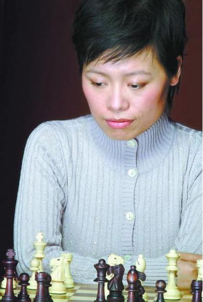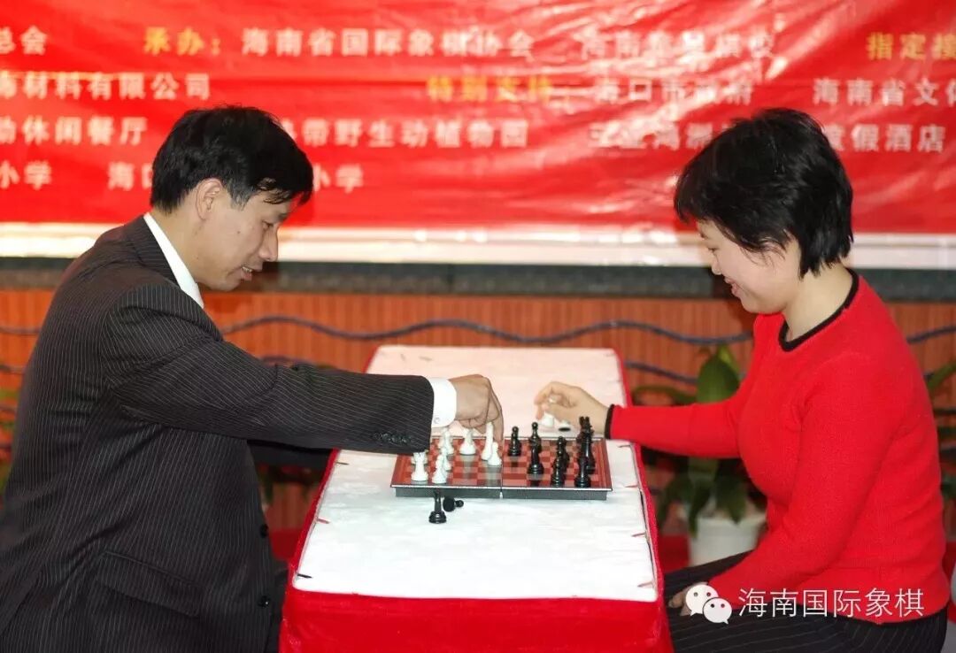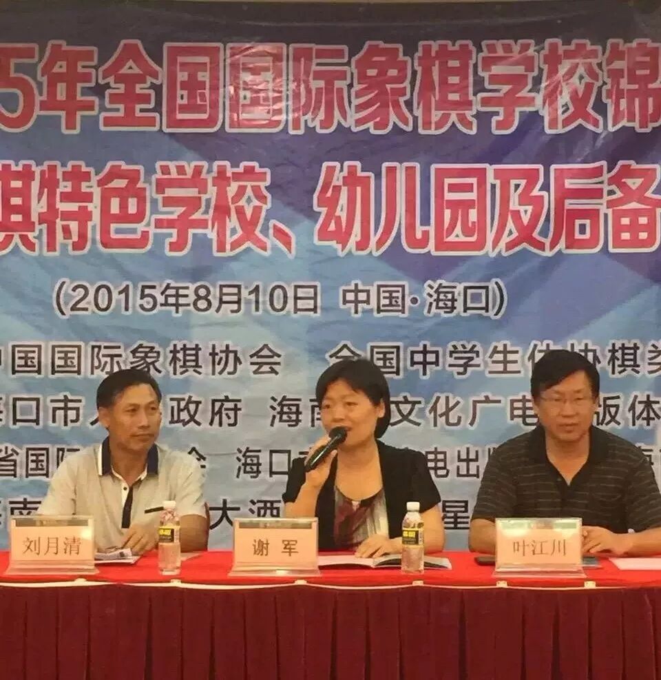 海南省国际象棋协会常务副会长兼秘书长刘月清(左)与谢军老师