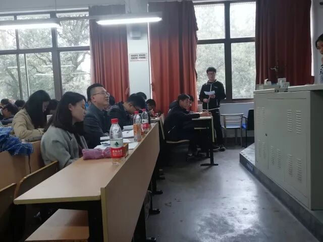 11月21日星期二下午,在第四教学楼的4204室,技科二班形势与政策答辩就这样揭开了帷幕。这次答辩由张明亮同学担任主持人,形势与政策调研组柴宏宇老师、技术科学试验班三班辅导员高丽梅老师、以及我们技科二班可爱的辅导员毛爱佳小姐姐(画风才没有发生突变呢)担任评委,在12点30分正式开始。