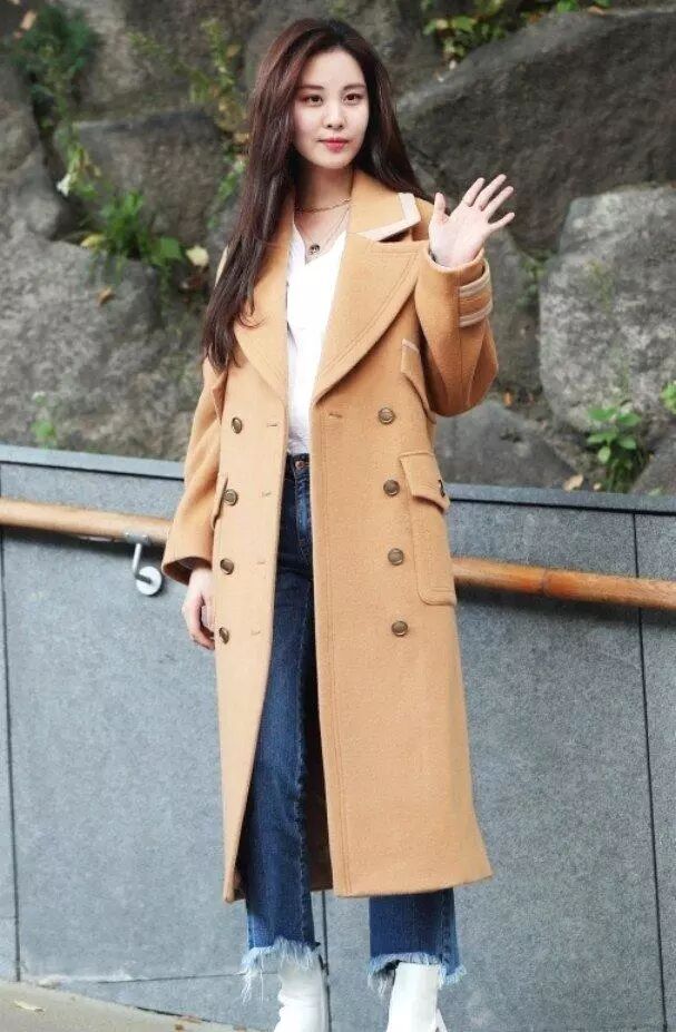 徐珠贤身着一件白色上衣打底,还外搭了件卡其色大衣外套,显得时尚又大气,完美演绎了正确的冬日穿搭,下搭一条深色 牛仔裤的她,还踩了双白色短靴,很有摩登范儿,任谁看了这个造型都喜欢!