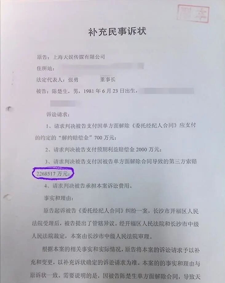 但天娱索要227亿的天价解约费,这是当时娱乐圈最高的解约费。