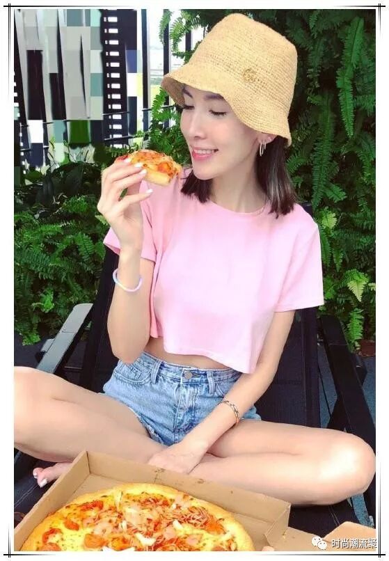 粉色肚脐上衣和牛仔短裤让陈若仪看起来非常粉嫩。清新的色彩组合和整个人年轻的外表让陈若仪从任何角度看都显得非常年轻。