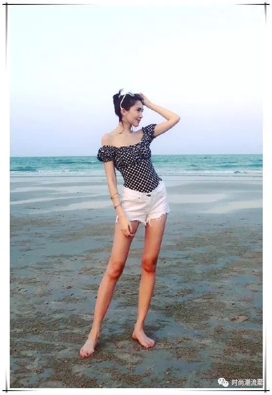 如果说前一张照片也可以说是因为拍摄技术展示了陈若仪的长腿和蜂腰,那么这张站在沙滩上的照片充分展示了陈若仪身体完美的一面,全身的比例足以让一大群女孩羡慕。