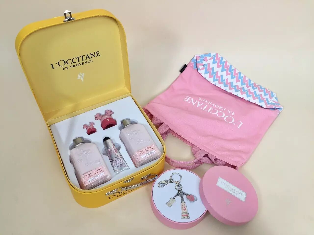 限量版欧舒丹“真心语鹿”礼盒以精巧旅行箱造型出现,旅行箱礼盒中含鹿晗主推的欧舒丹甜蜜樱花润肤露与欧舒丹甜蜜樱花手霜。
