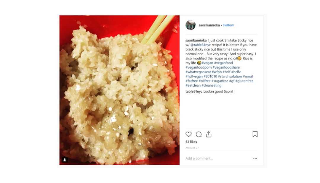 (之后日本菇凉Saori还按照我的食谱在自己家做了素食糯米饭)