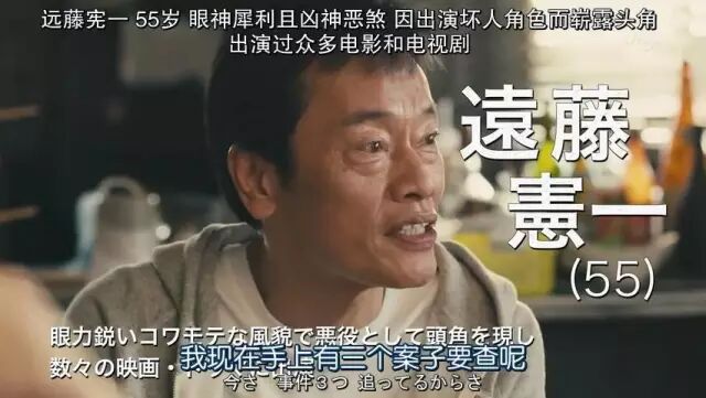 远藤宪一:55岁,流氓、杀手、黑社会老大分分钟入戏,眼神犀利、凶神恶煞,因出演坏人而崭露头角。他是《不毛地带》中不择手段的商人鲛岛辰三、《温泉杀手》中刀刀致命的杀手。
