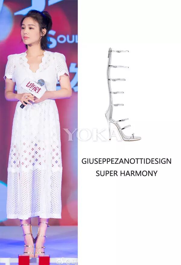 加之GiuseppeZanottiDesign金色高跟罗马凉鞋秀出纤细长腿,整体LOOK有没有暴瘦了十斤的感觉?