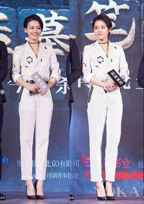 在《盗墓笔记》发布会上,马思纯身着白色条纹衬衫和长裤帅气登场,加上一头利落短发,尽显潇洒干练。