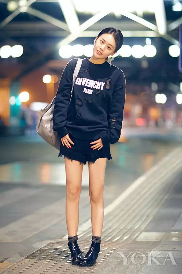 身穿卫衣、热裤现身机场的马思纯活力百变,笑容迷人,Givenchy紀梵希卫衣搭配ALEXANDERWANG短裤,大玩下衣失踪风。