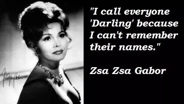 她最著名的特色,就是用浓浓的东欧口音,称呼所有人“亲爱的”(Dahling),男人们都很吃这一套,但背后的真相却是:“因为我不记得他们的名字,所以干脆都叫亲爱的。”
