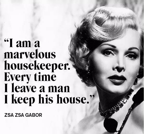 她说:“我是一个杰出的‘管家’,每次我离开一个男人,我都会保管他的房子。”