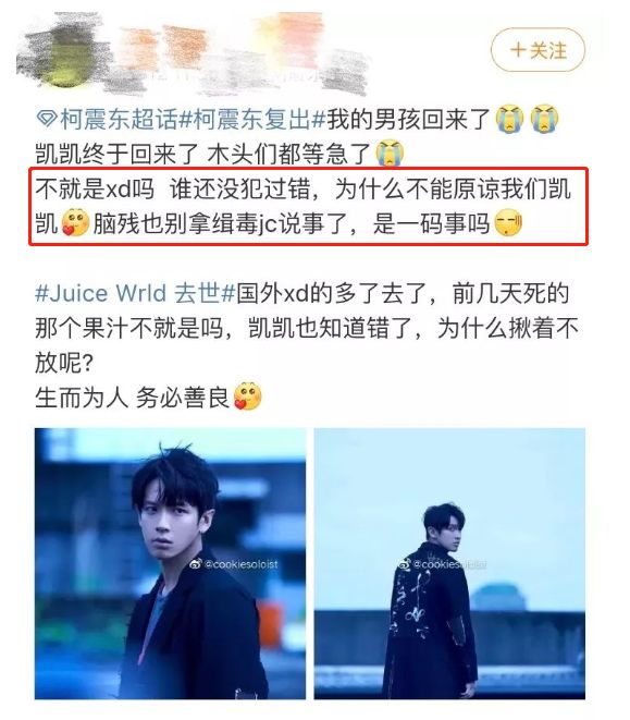 “不就是吸毒吗?谁还没犯过错?为什么不能原谅我们凯凯,脑残也别拿缉毒警说事儿了,是一码事吗?”