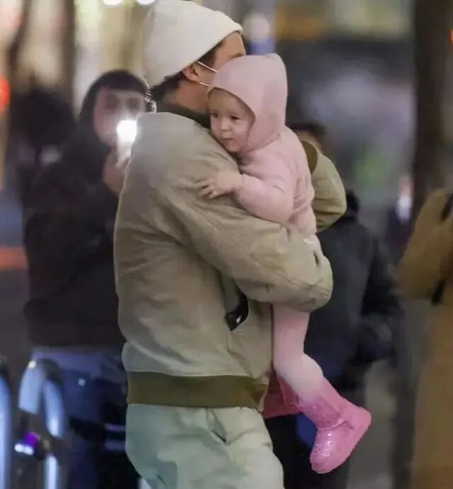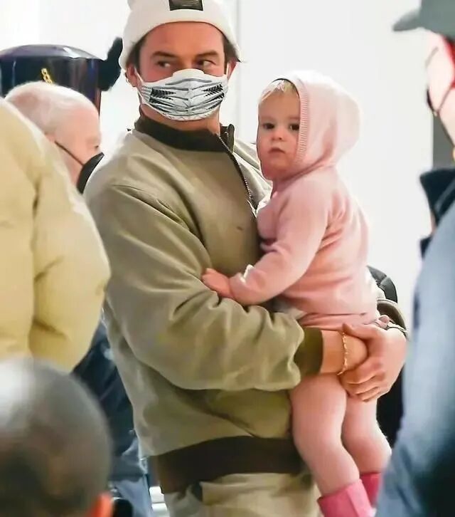 当然,作为爸爸的奥兰多·布鲁姆也会帮忙带小孩。当水果姐KatyPerry抱累了就换成爸爸奥兰多·布鲁姆来带。不过,奥兰多·布鲁姆的打扮似乎比较随意一些,穿着军绿色棒球外套搭配浅绿色的长裤,白色帽子显得有点小,就连口罩也有点小,没有完全遮住脸颊,倒是显得有几分趣味。