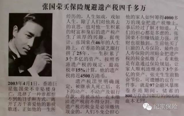 据了解,张国荣早在1990年前后,便通过AIA区域总监买了美国友邦的保险,先后认购4张保单,其中1张保单的最高赔偿额约高达 780万港元。张国荣去世后,其继承人可获得总值约在3000万至4200万港元之间的人寿赔偿,当中仍未计算张国荣可能向其他公司购入的保单。