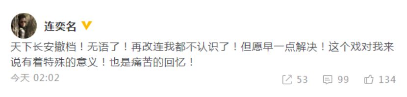 16日晚间,该剧导演连奕名肆意不满,在微博发声,情绪略显激动,一连使用6个感叹符号祈求该事件赶快解决,并疑似暗指《天下长安》确认央视黄金档播出前,曾遭到多次改动。