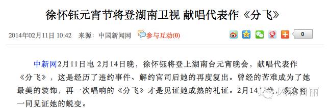 比如徐怀钰2014年参加湖南卫视的元宵晚会其实就是等到了复出的一道“曙光”。