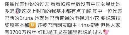 其实大家也不用太上纲上线,杂志一共选了14个国家的女星,有一个没在封面里的,来自巴西的女星,跟杨颖情况很像,在本国也被骂惨了。