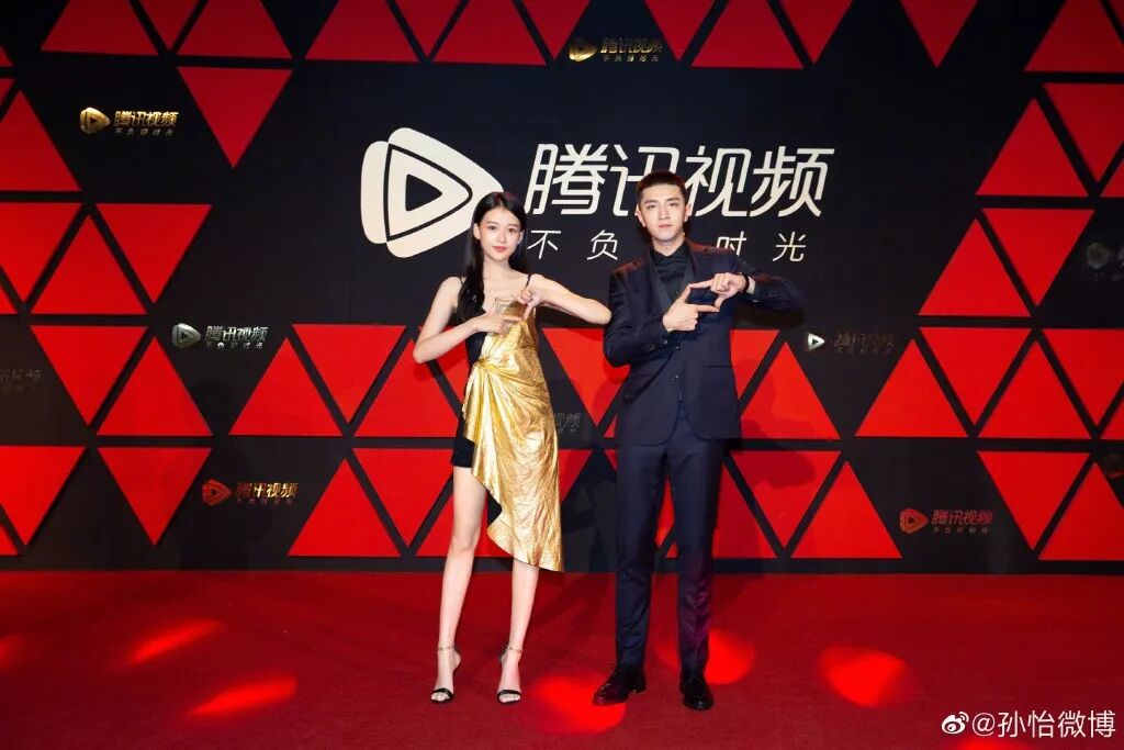 ▲最近,孙怡身穿黑金拼色连衣裙走上红毯,不对称裙摆下腿长两米八,尽显好身材!