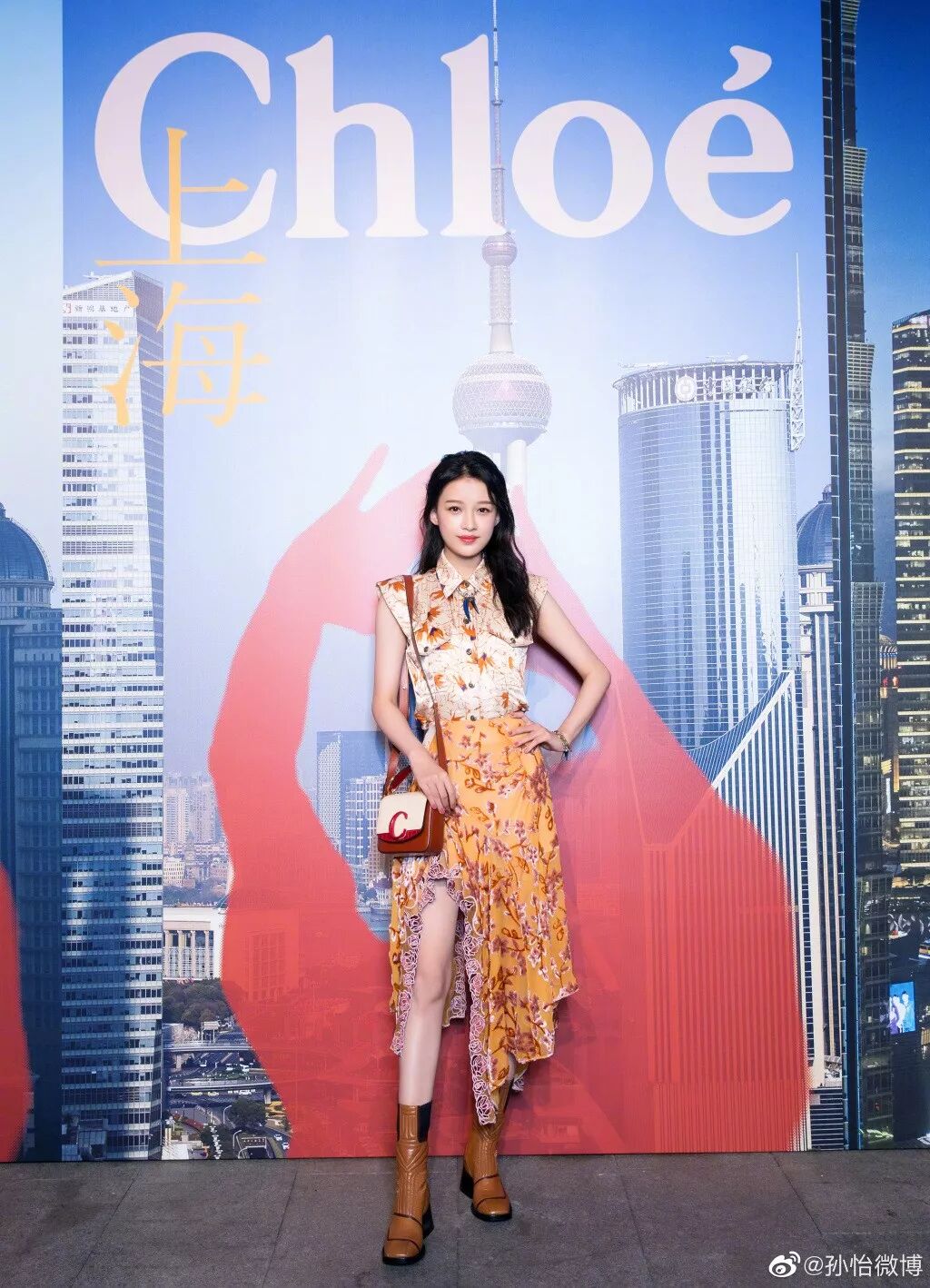 ▲不久前孙怡也穿着类似款的不对称连衣裙出席活动。雪纺长裙飘逸,开衩设计因为裙子里多了一层同款花色的短内衬变得更加实用,搭配短靴,裙子也能穿得很潇洒。