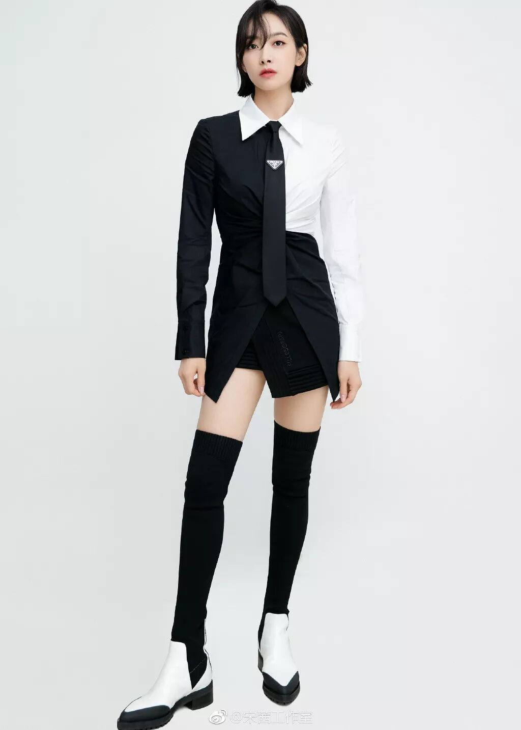 ▲宋茜和李宣美的短裙异曲同工:mini短裙尽显大长腿,裙摆处的不对称设计又细节感十足。