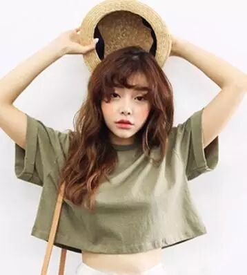 长卷发随意披散在肩头,空气感刘海清新动人,搭配一顶宽沿草帽,演绎出韩式清新气质。