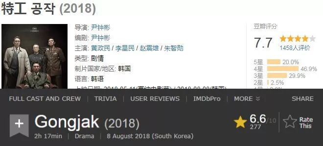 《工作》在豆瓣上译名为“特工”,并获得了7.7分,