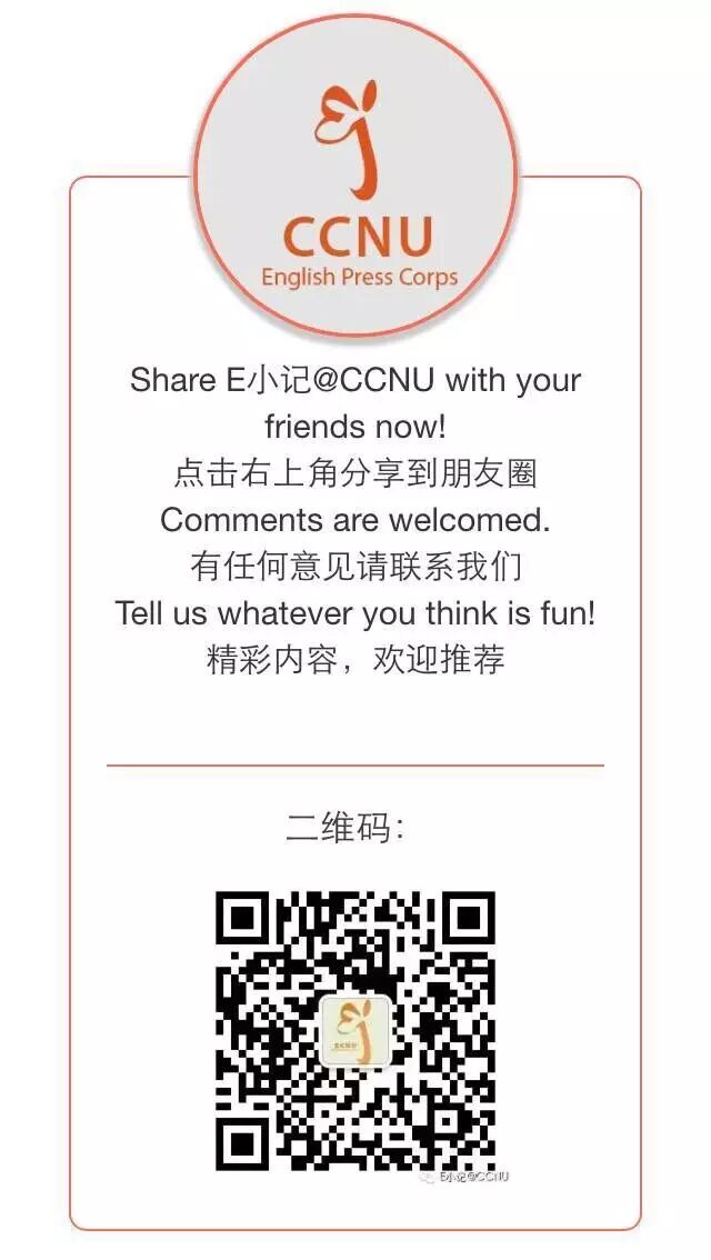 华中师范大学面向广大师生的唯一官方英文平台 为大家提供一手英文咨询 网络热点 自制英语视频 记者团自主采写新闻 身边发生的大事儿小事趣事儿 旨在英语学习 文化体验 开拓眼界 娱乐身心 欢迎关注!