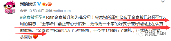 前两天,金泰熙经纪公司大方公布了金泰熙已经怀孕15周的消息 ↓↓